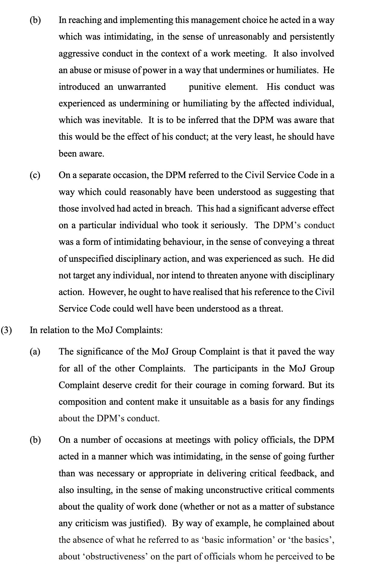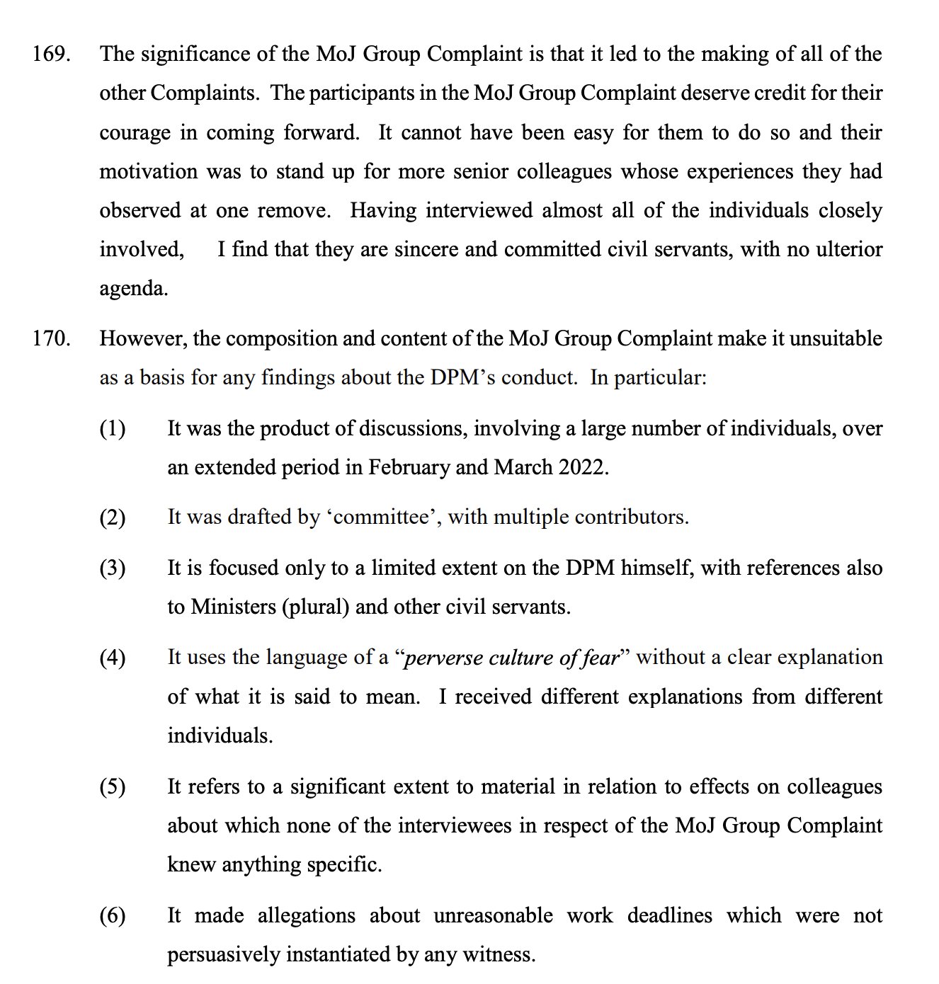 BUT the complaint was produced by a committee, and involved other ministers and senior bosses who had contribute to "a perverse culture of fear" at the MoJ.