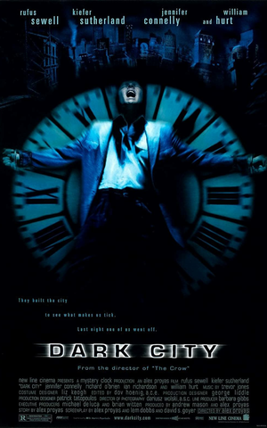 Dark City: Directed by Alex Proyas. With Rufus Sewell, William Hurt, Kiefer Sutherland, Jennifer Connelly. A man struggles with memories of his past, which include a wife he cannot...