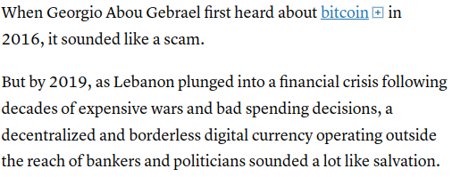 More Lebanese are turning to bitcoin as they wake up from the ridiculous delusion that their kleptocratic banking system can be reformed & their money returned.
