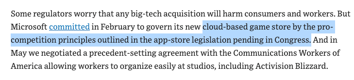 8/ How do we know? Well Smith is offering a concession as part of the merger. Microsoft will treat people well once it has a “cloud-based game store” monopoly. But why let it have a monopoly in the first place?