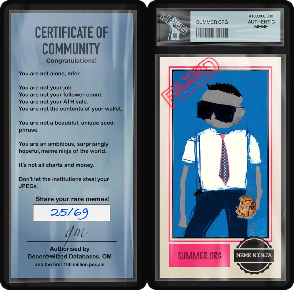 This morning I had the ETH to go @art_icu_late store to pick up a Meme Ninja. This meme using pieces from @unofficialmfers @XCOPYART @6529er seemed to be the best way to capture this story and the end Season 1 by @6529Collections