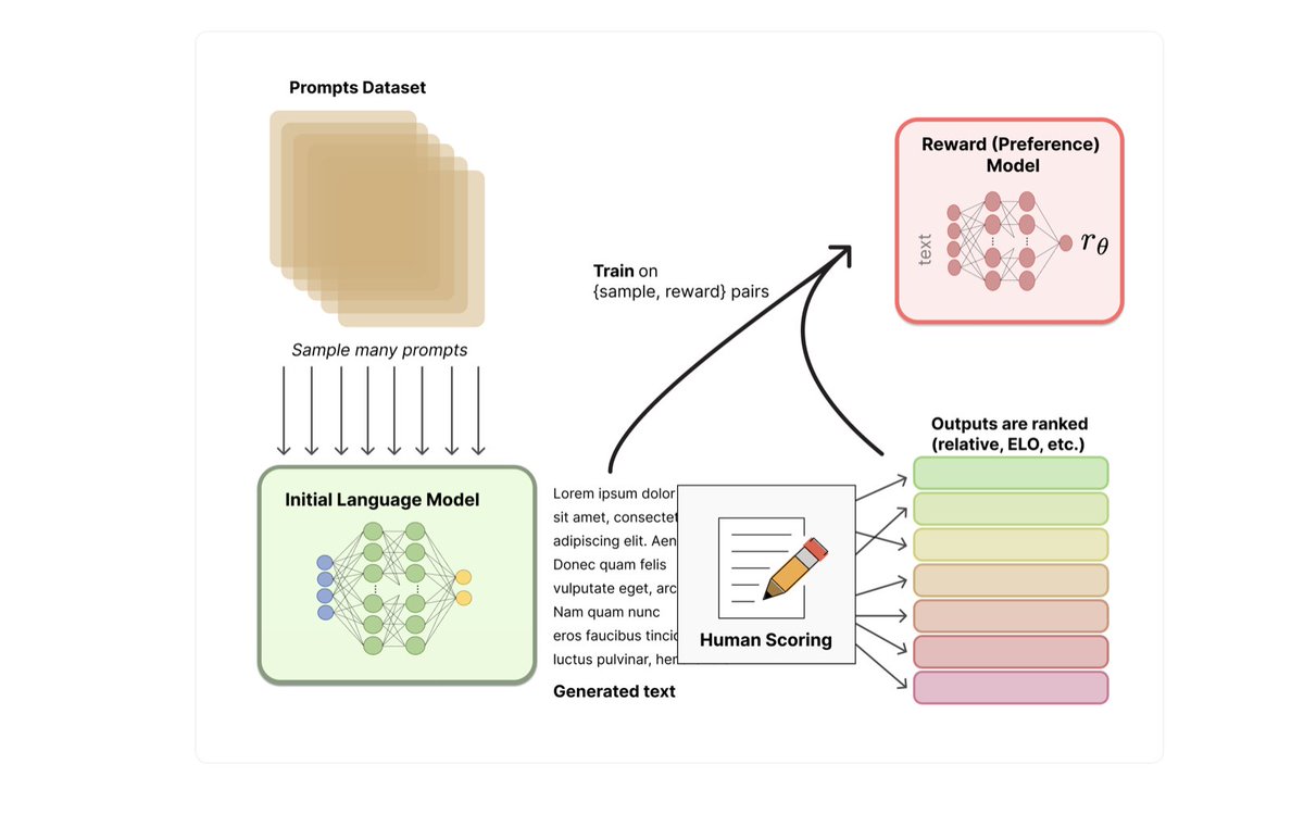 Now we have a labelled dataset, then training a Reward Model will learns how the human would actually rank the responses