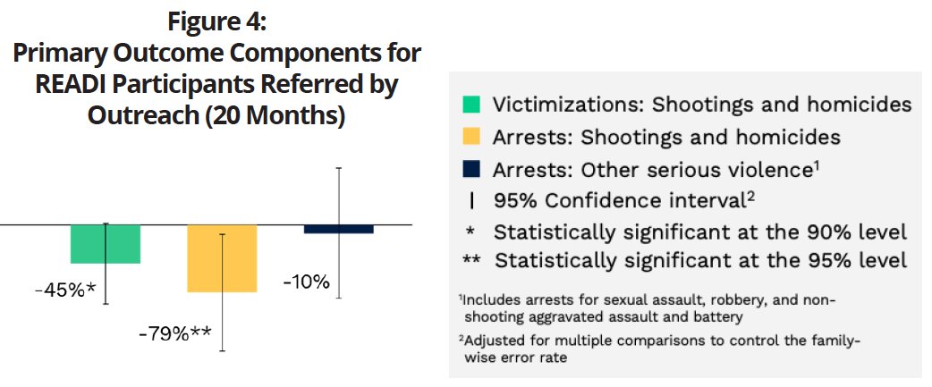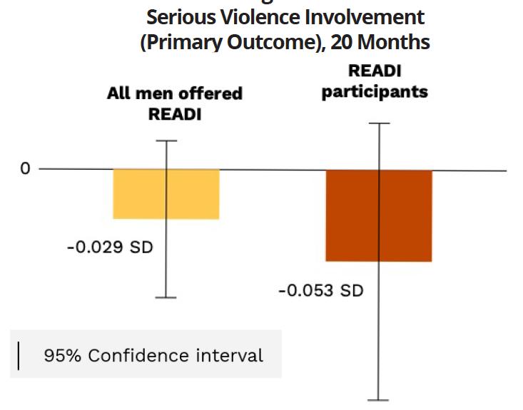 Frankly, we thought all three measures would move in the same direction, which is why we pre-committed to an average of all 3 as the primary measure of success. And by that measure, READI only weakly reduced violence.