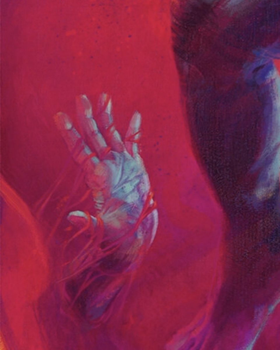8/ One hand of the female plunges into the fabric of Luci, while the other cradles his chin.