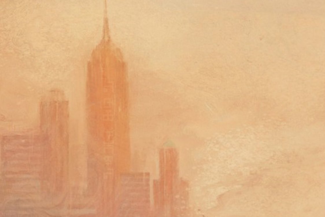 The Manhattan skyline in the distance seems to resemble where Luci takes their first steps away from, ignoring the footprints.
