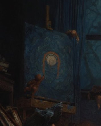 A hand extends out of the cloud for Luci’s ankle, a motion that reappears in piece six “The Muck”, suggesting while Luci appears to be on the move so often.