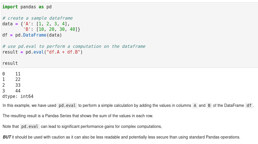 Used for performance optimization; Efficiently evaluates string expressions as Pandas expressions for complex computations, leading to significant performance gains.