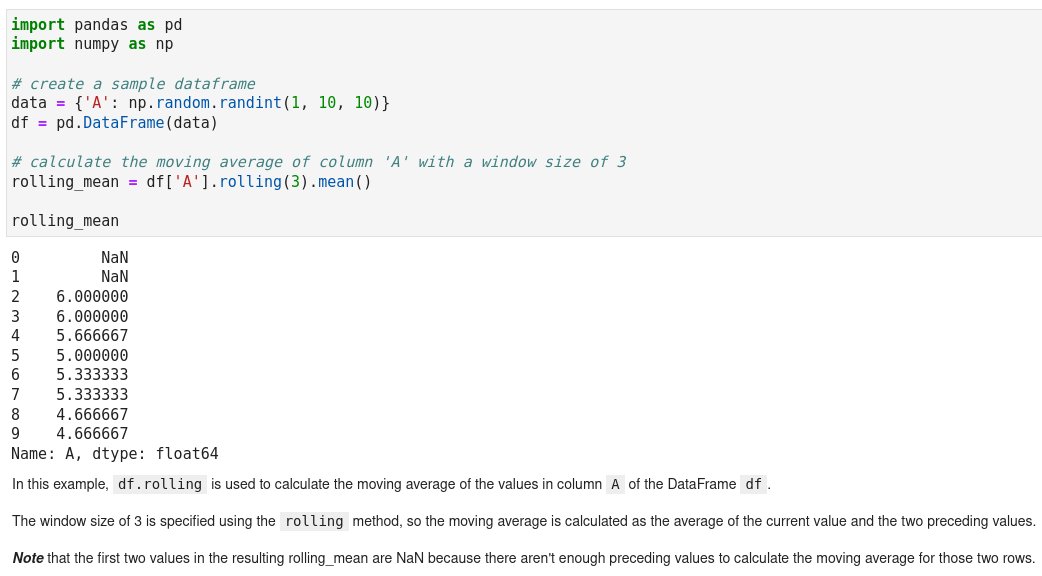 Calculates a moving statistic (such as mean, sum, or standard deviation) over a specified window of consecutive rows.
