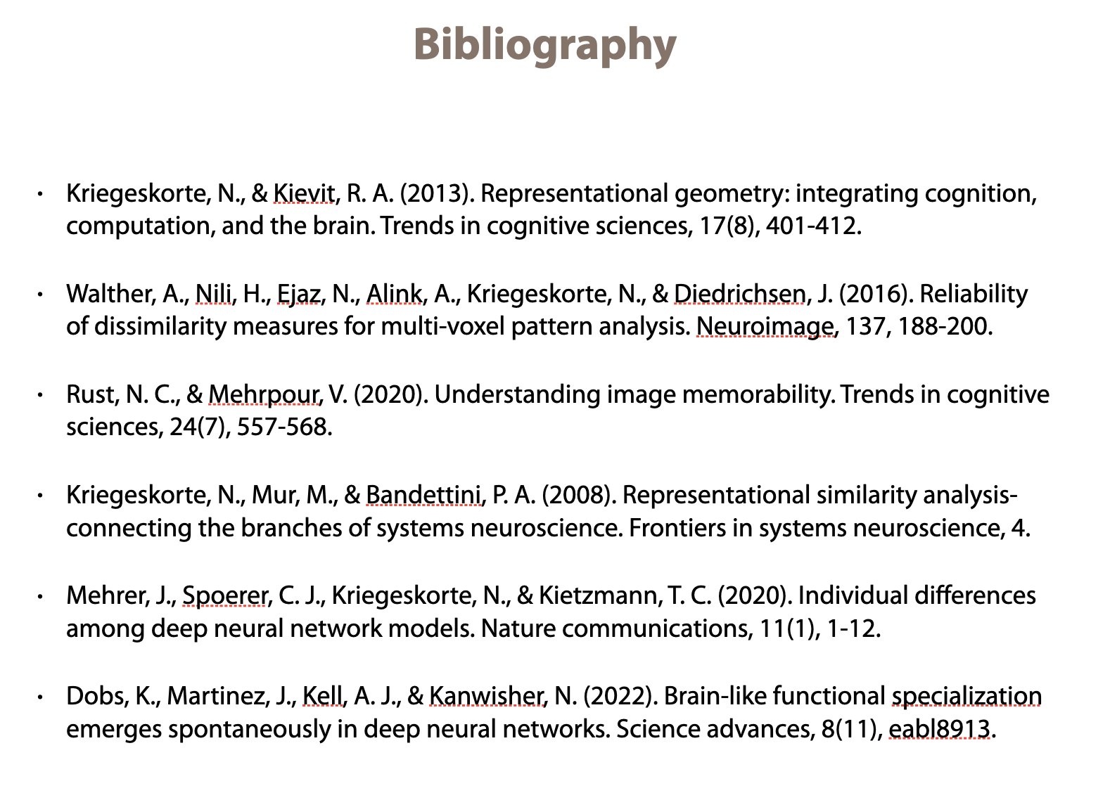 In lecture 3, we took an in-depth look at RSA: The general idea, properties of various distance measures, noise ceilings, applications for brain-model comparisons and in-silico comparisons of ANN representations. Background reading by @SaxeLab and @KriegeskorteLab+@rogierK 4/