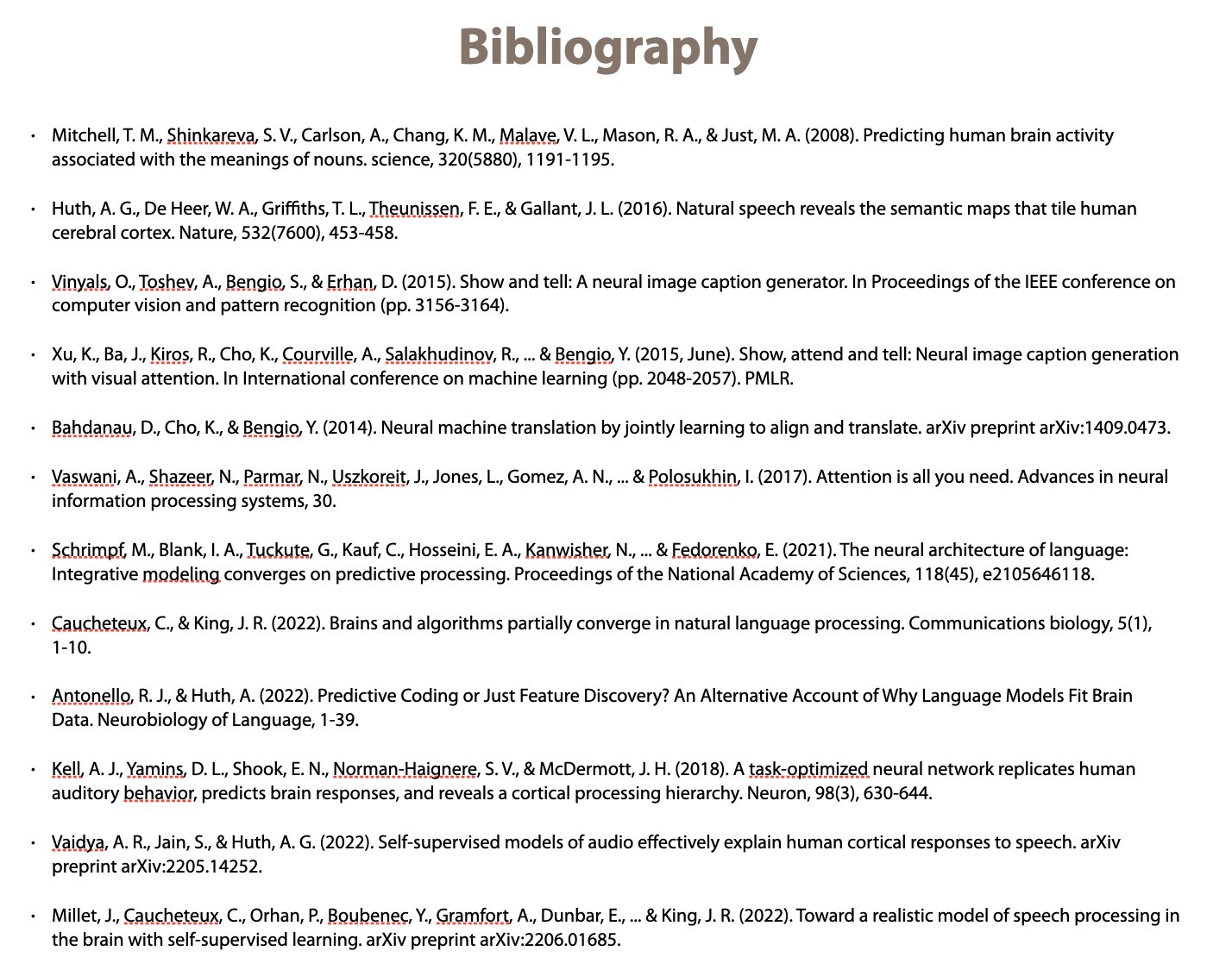 Lecture 9: language modelling. Started w Mitchell et al. (2008), moved to word2vec, and on to attention and transformers. We saw how they compare against human fMRI, ECoG, and MEG data, and finished by looking at models of auditory cortex. bg reading: @martin_schrimpf /10