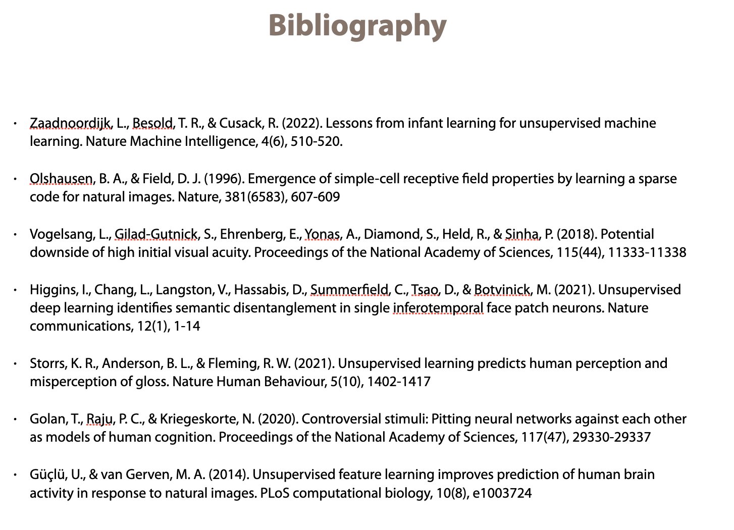 Lecture 6: lessons from cognitive development and unsupervised learning (generative models, including VAEs). VAe applications in predicting macaque face patch data, human perception of glossiness, and their role in controversial stimuli. bg reading: @LorijnSZ, Higgins /7