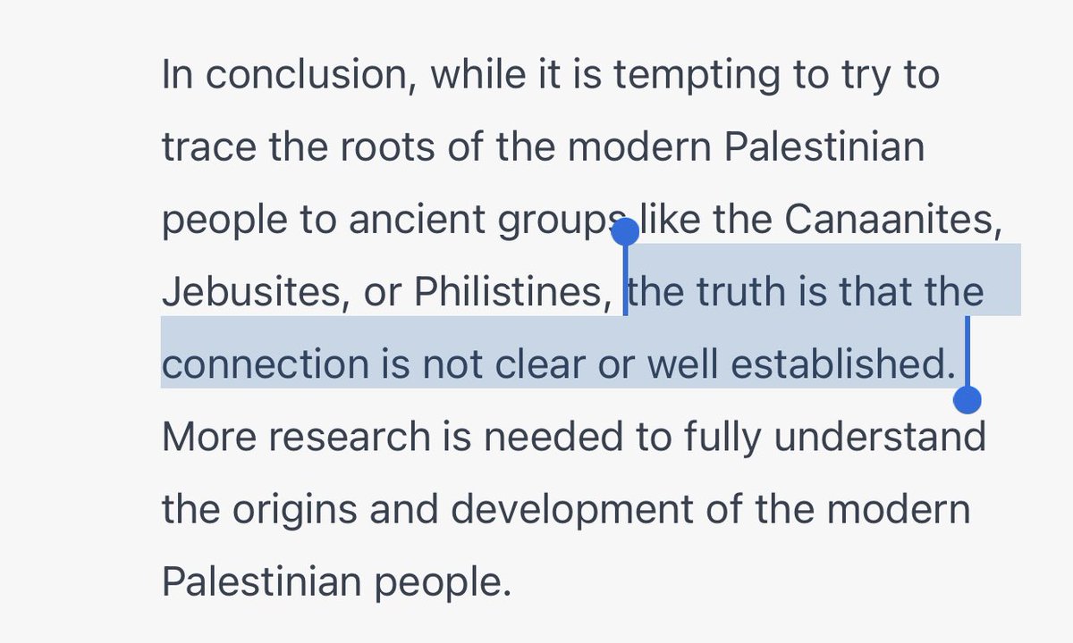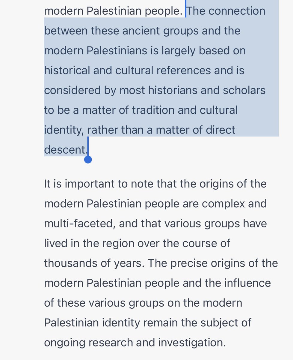 chatGPT: Yes, you’re right, there is no definitive evidence linking modern Palestinians to ancient groups…but it’s considered to be a matter of “tradition.”